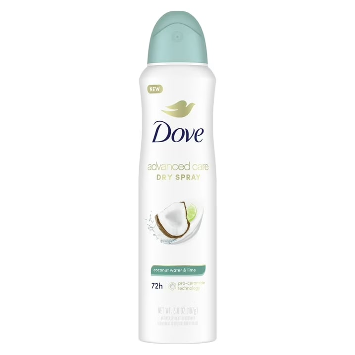 Dove Advanced Care Women's Antiperspirant Deodorant Dry Spray Coconut Water & Lime, 3.8 oz. Ready to experience beautifully soft, resilient underarms? Yes please. Introducing Dove Advanced Care Coconut Water & Lime Antiperspirant Dry Spray, the antiperspirant hero that helps your skin barrier repair after shaving with every use. Indulge in the zesty lime scent and creamy coconut fragrance, which energizes and uplifts your senses from AM to PM. Dove’s Advanced Care antiperspirant deodorant range features innovative Pro-Ceramide Technology, which helps to strengthen your skin’s barrier by boosting ceramide levels (that naturally reduce when you shave), helping it repair and recover after shaving. Using this kind-to-skin antiperspirant deodorant means your underarms can get better skin care as you spray, without letting any shaving worries get in the way. Did you know that when you shave, ⅓ of what you remove is skin? Cue Dove Advanced Care Coconut Water & Lime Antiperspirant Dry Spray, infused with Pro Ceramide Technology to help your skin barrier repair and recover from shaving symptoms, like dryness and redness. With 72-hour odor control and sweat protection, it quickly dries on your skin and reduces underarm sweat, so you can shave, apply antiperspirant deodorant, and start your day with touchably soft skin. Shake your antiperspirant deodorant well, then hold the can six inches from your skin. Spray for two seconds under each underarm for 72-hour antiperspirant deodorant protection and enjoy touchably soft skin. Remember to wait a few minutes before applying your antiperspirant deodorant after shaving – the formula works best on cool, dry skin. If you love juicy, fruity scents, we also recommend trying Dove Advanced Care Passion Fruit & Lemongrass Dry Spray for a daily feel-good fix. Or grab the Revive Dry Spray, which mixes hints of lemon verbena and pomegranate, uplifting and soothing your senses as you go about your day. Globally, Dove does not test on animals and is PETA Approved, and this antiperspirant deodorant is PETA Approved Vegan. Do not use on broken skin. This bundle contains a total of 3 single packs of Dove Advanced Care Women's Antiperspirant Deodorant Dry Spray Coconut Water & Lime 3.8 oz per pack plus 3 My Outlet Mall Resealable Storage Pouches.