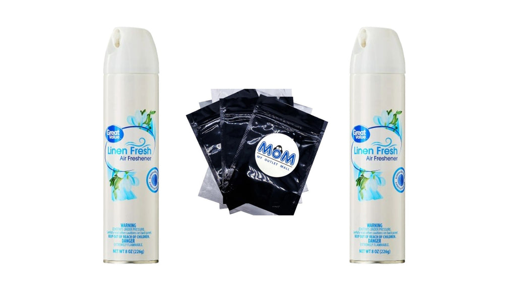 BUNDLE INCLUDES: This bundle contains a total of 2 single packs of Great Value Aerosol Air Freshener, Linen Fresh 8 oz per pack plus 3 My Outlet Mall Resealable Storage Pouches.