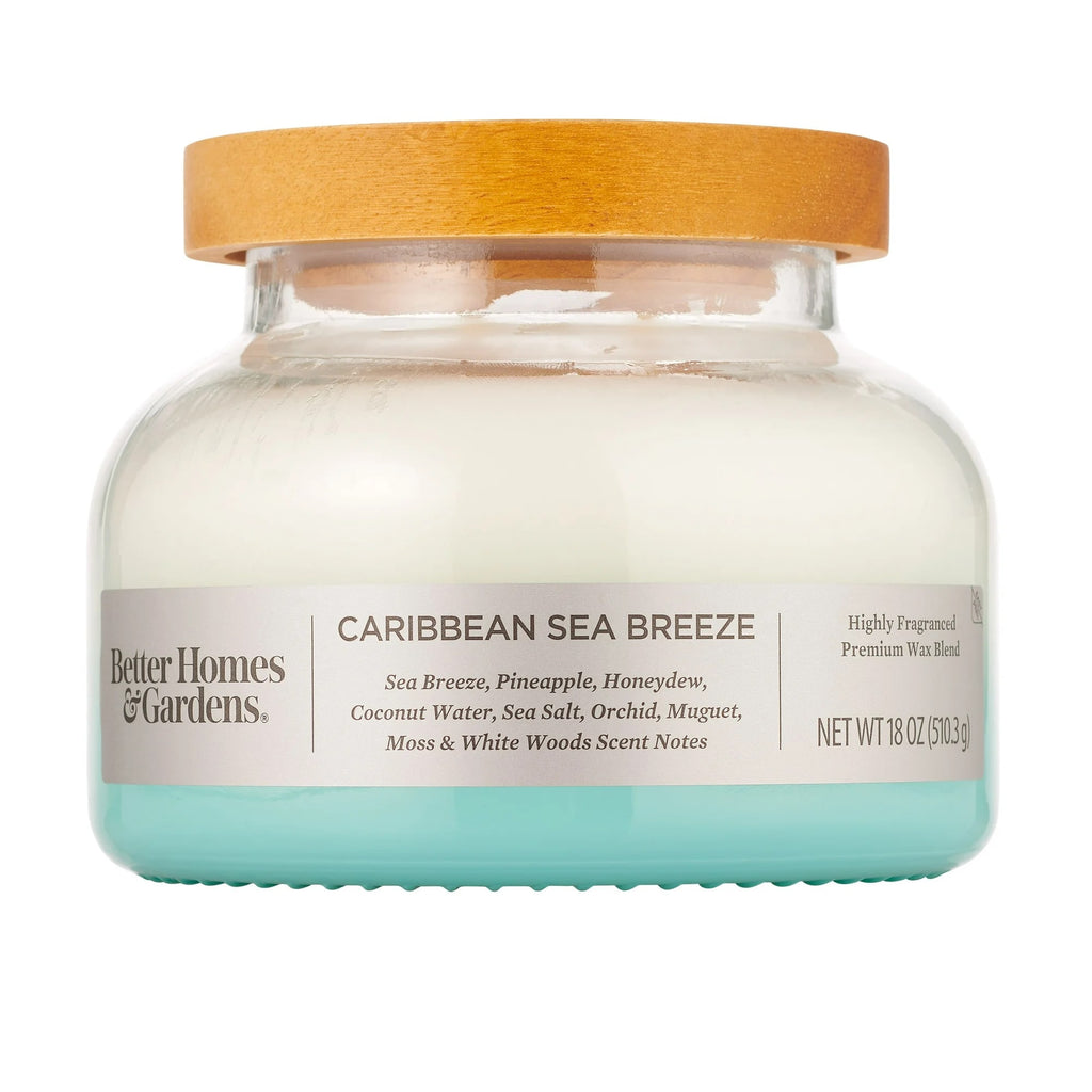 BUNDLE INCLUDES: This bundle contains a single pack of Better Homes & Gardens Caribbean Sea Breeze Scented 2-Wick Ombre Bell Jar Candle 18 oz per pack plus 3 My Outlet Mall Resealable Storage Pouches.