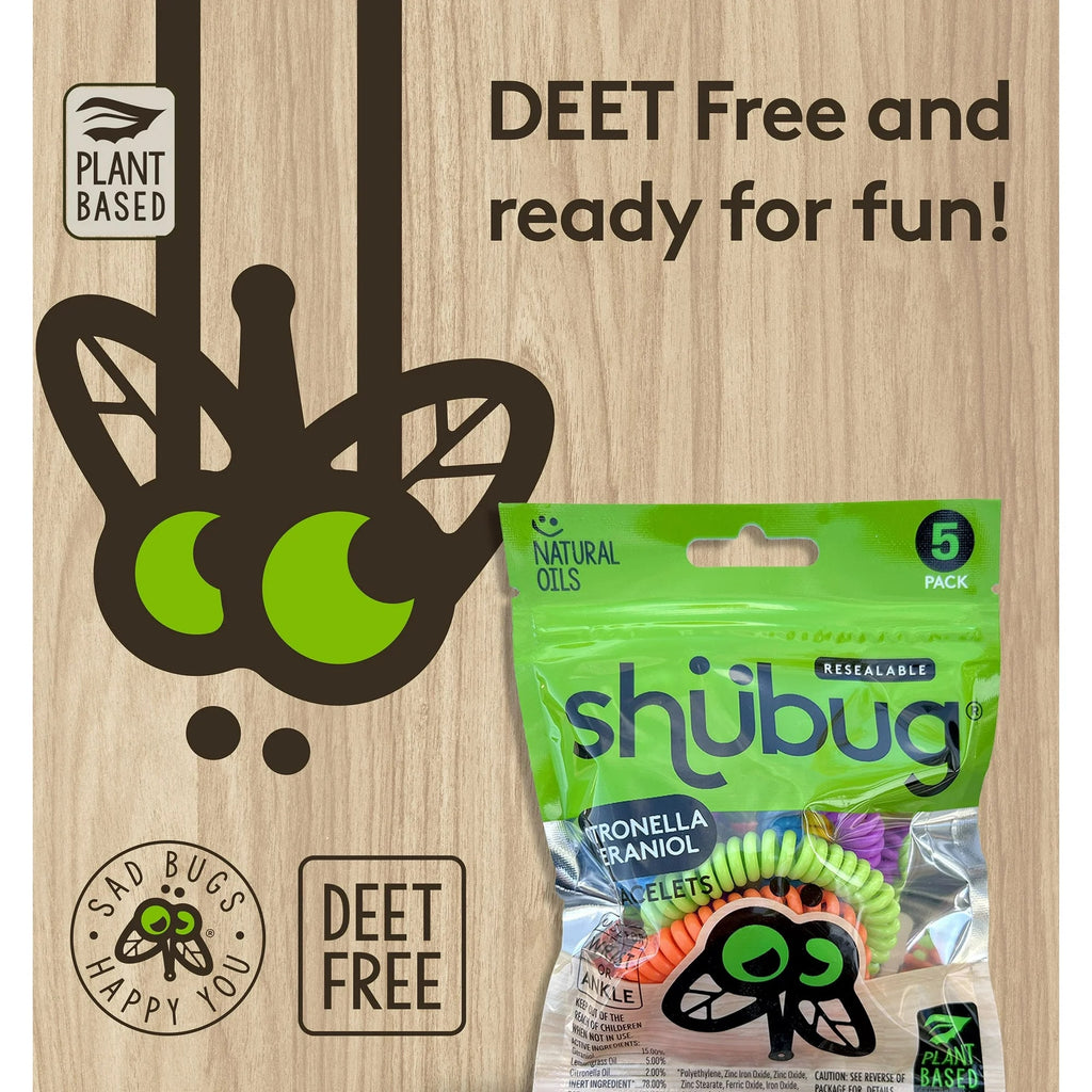 Ready to enjoy bug-free outdoor adventures? Purchase your 5-count pack of Shubug Citronella and Geraniol Coil Bracelet Bands today!