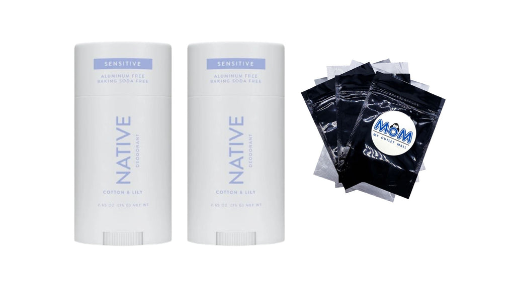 BUNDLE INCLUDES: This bundle contains a total of 2 single packs of Native Deodorant Sensitive, Aluminum Free, Cotton & Lily 2.65 oz per pack plus 3 My Outlet Mall Resealable Storage Pouches.