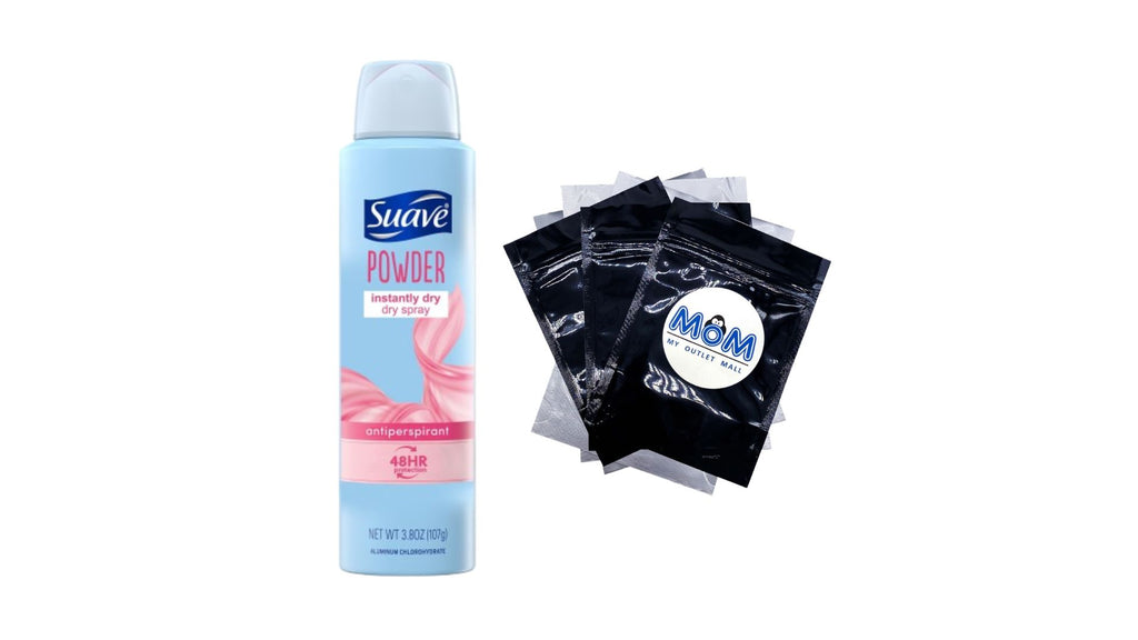Suave dry spray antiperspirant deodorant powder fresh is the perfect dry spray for women who want a dependable antiperspirant deodorant that works. Providing 48-hour protection, this spray-on antiperspirant deodorant goes on instantly dry and protects skin against odor and wetness. Suave dry spray goes on clear, leaving no white residue, protecting from stains. Feel free to spray and go with confidence since this dry spray will give you the protection you need without staining clothes. This spray antiperspirant deodorant fights off sweat and unsightly sweat patches while providing odor-blocking properties that leave you feeling fresh all day long without needing to reapply. The powder fresh scent in this women's deodorant is light and subtle and will keep you smelling good. Suave dry spray antiperspirant deodorant is recommended for daily use and couldn't be easier to apply. This bundle contains a single pack of Suave Dry Spray Instantly Dry Powder Antiperspirant Deodorant 3.8 oz per pack plus 3 My Outlet Mall Resealable Storage Pouches.