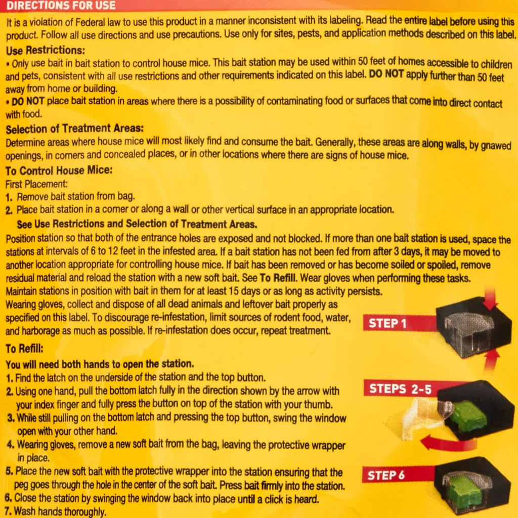 - EASY TO USE: The bait station is easy to set up and use. Simply place the bait inside the station, secure the latch, and position it near areas where mice activity is suspected.