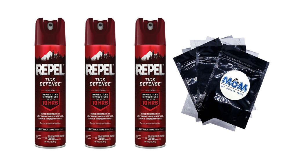 BUNDLE INCLUDES: This bundle contains a total of 3 single packs of Repel Tick Defense Aerosol Spray with 15% Picaridin 6.5 oz per pack plus 3 My Outlet Mall Resealable Storage Pouches.